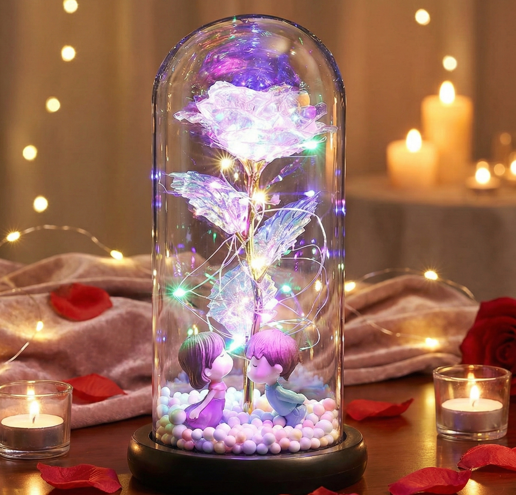 Elegant Glaskuppel: Beskytter rosen mod støv og giver et eksklusivt look, der pynter smukt i ethvert hjem.